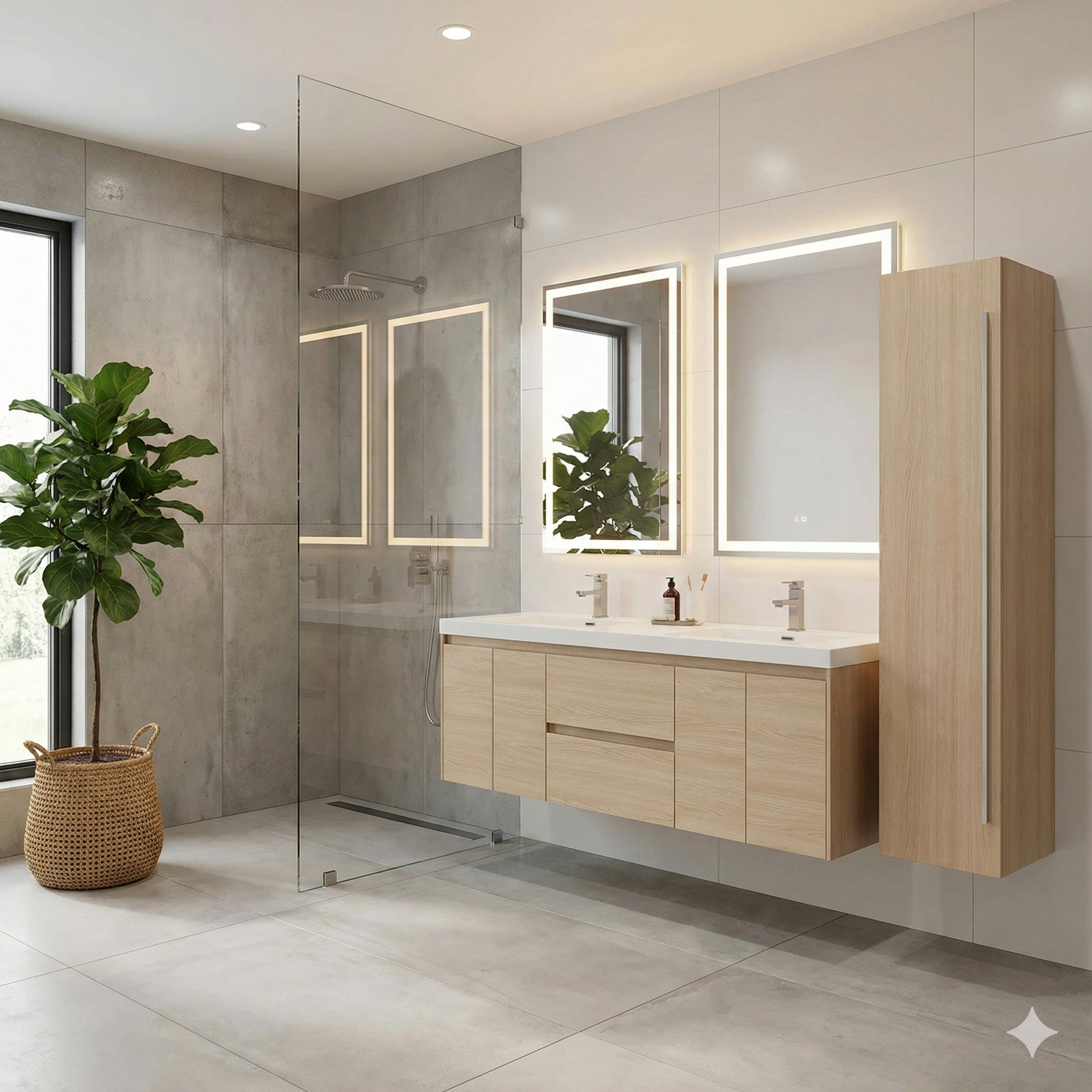 The cabinet comes in Rosewood finish, feauring 5 storages units and one door with BLUM soft closing hinges, door can open left or right. It matches nicely with all the rosewood finished vanities we offer, cabinet is fully assembled.