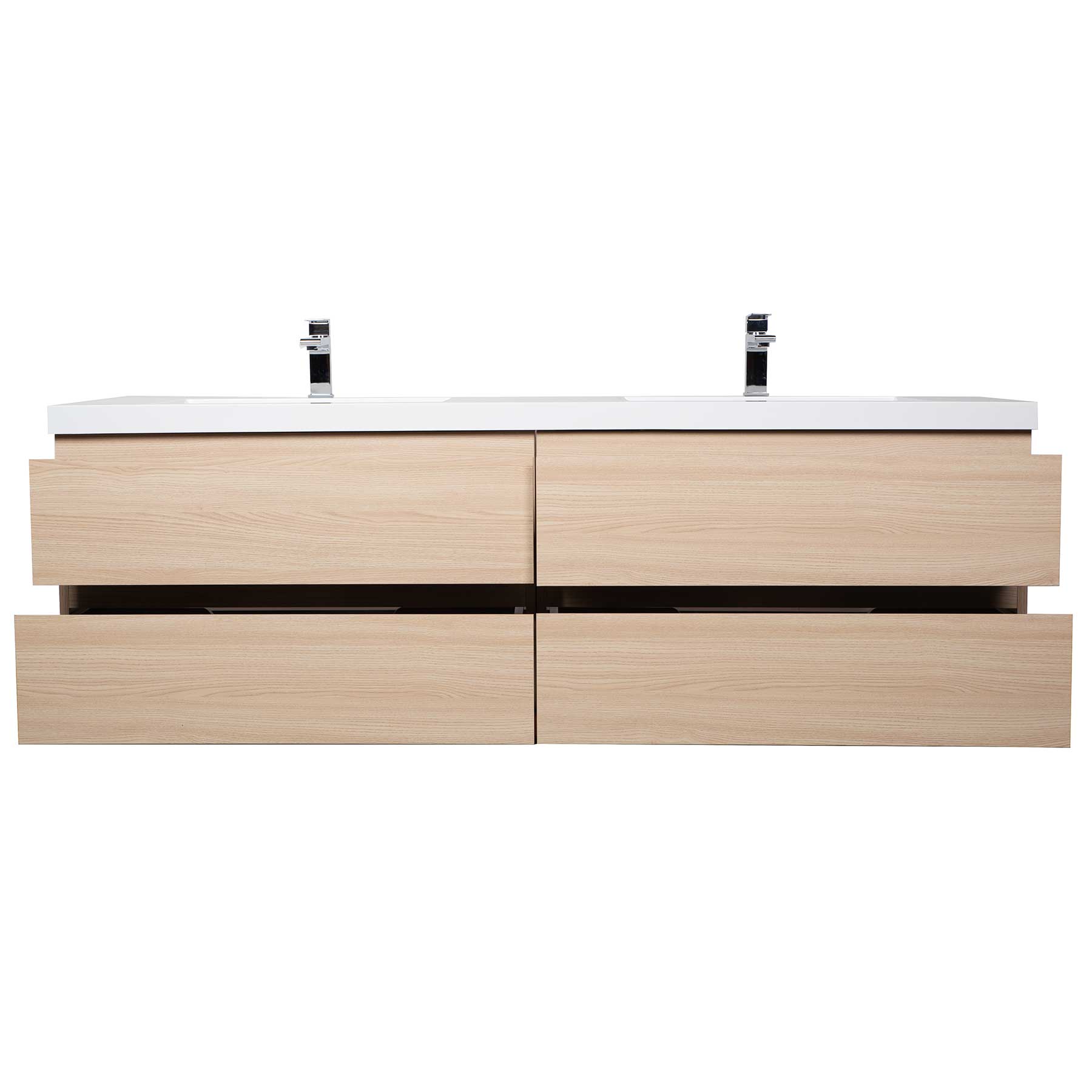 Angela 72" Contemporary Double Sink Wall Mounted Bathroom Vanity , White Oak