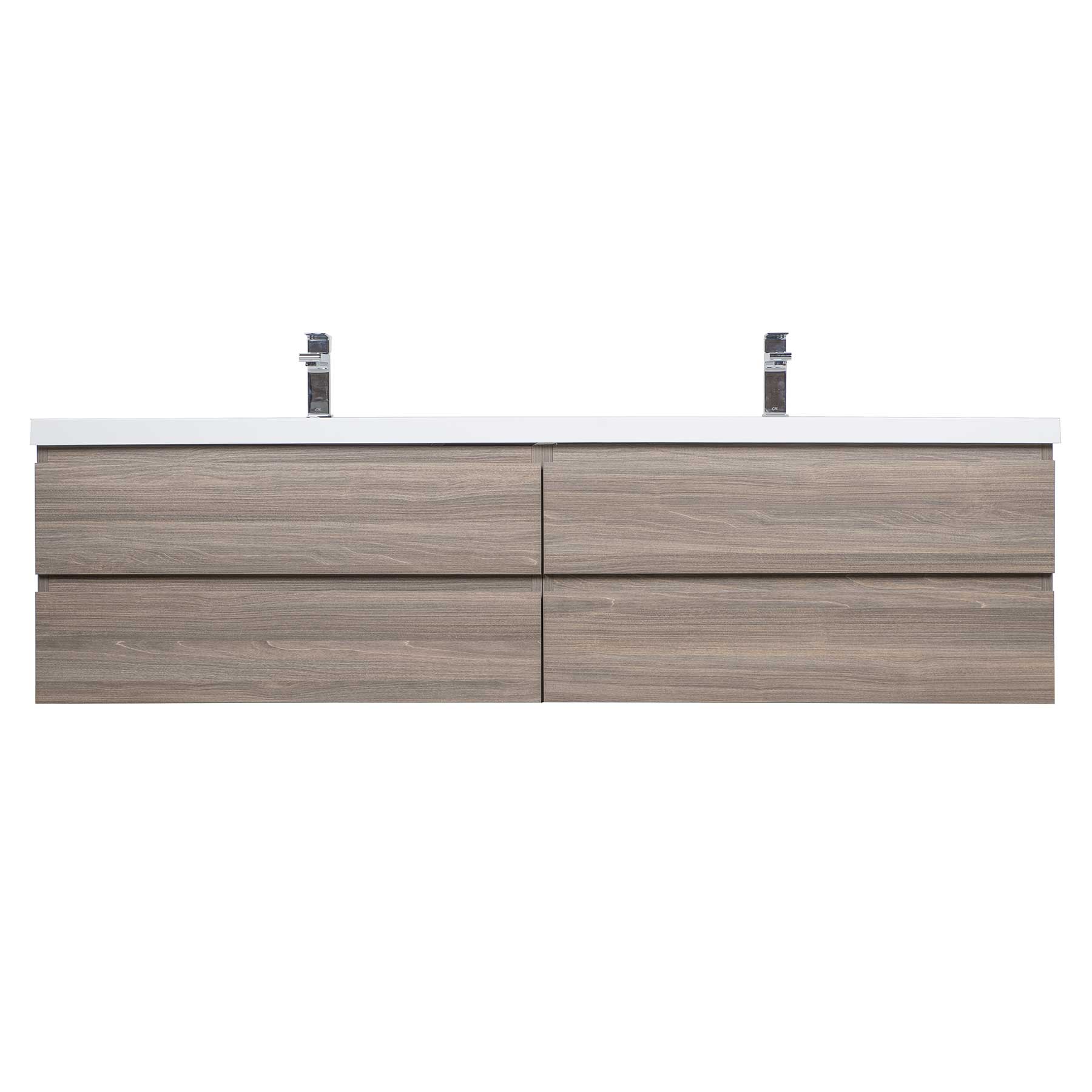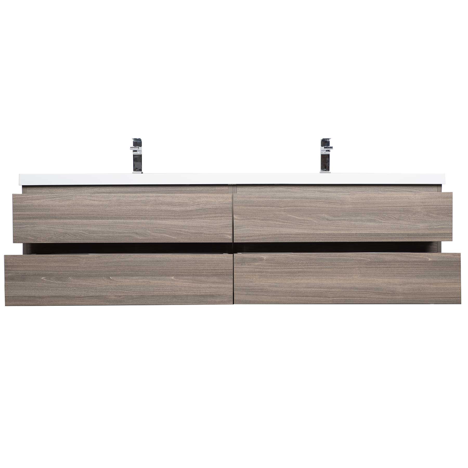 Angela 84 In. Contemporary Double Wall Mounted Bathroom Vanity, Maple Grey
