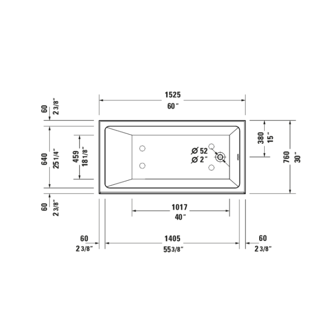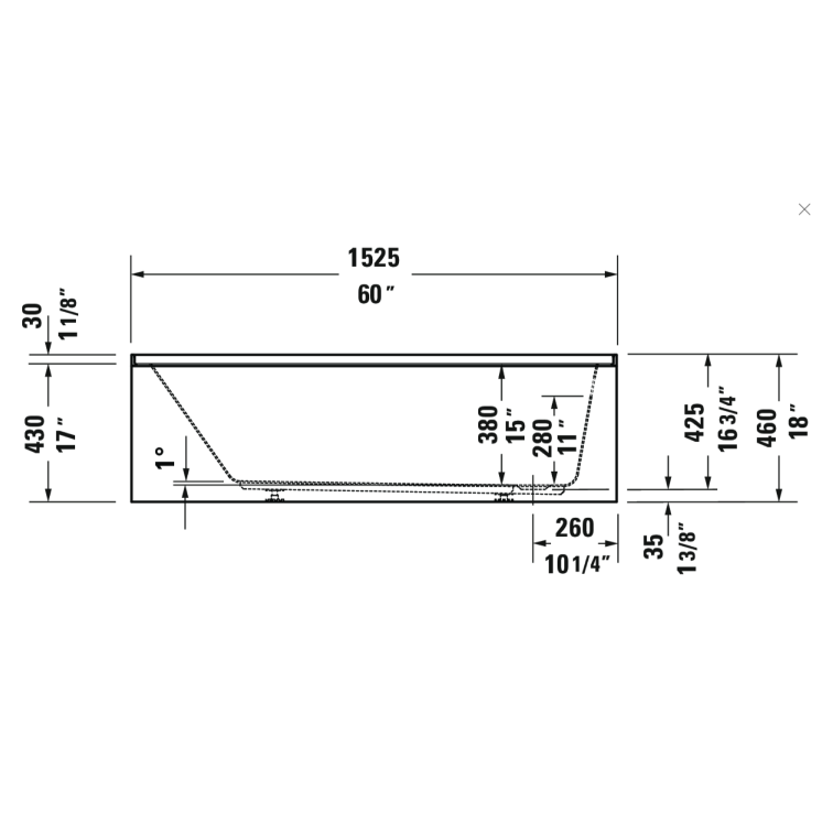 Duravit 700653000000090 Duravit No.1 60'' x 30'' Rectangular Alcove Bathtub in White Acrylic with Right Drain, Drain Sold Separately, ADA Compliant
