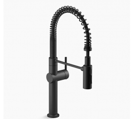 KOHLER K-22973-BL MATTE BLACK CRUE 1.5 GPM 1 OR 3 HOLE DECK MOUNT SINGLE LEVER HANDLE PULL-DOWN SEMI-PROFESSIONAL KITCHEN FAUCET WITH OPTIONAL DECK PLATE