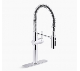 KOHLER K-22973-CP POLISHED CHROME CRUE 1.5 GPM 1 OR 3 HOLE DECK MOUNT SINGLE LEVER HANDLE PULL-DOWN SEMI-PROFESSIONAL KITCHEN FAUCET WITH OPTIONAL DECK PLATE