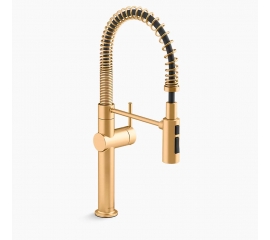 KOHLER K-22973-CP BRUSHED BRASS CRUE 1.5 GPM 1 OR 3 HOLE DECK MOUNT SINGLE LEVER HANDLE PULL-DOWN SEMI-PROFESSIONAL KITCHEN FAUCET WITH OPTIONAL DECK PLATE
