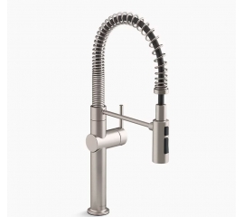 KOHLER K-22973-VS VIBRANT STAINLESS CRUE 1.5 GPM 1 OR 3 HOLE DECK MOUNT SINGLE LEVER HANDLE PULL-DOWN SEMI-PROFESSIONAL KITCHEN FAUCET WITH OPTIONAL DECK PLATE