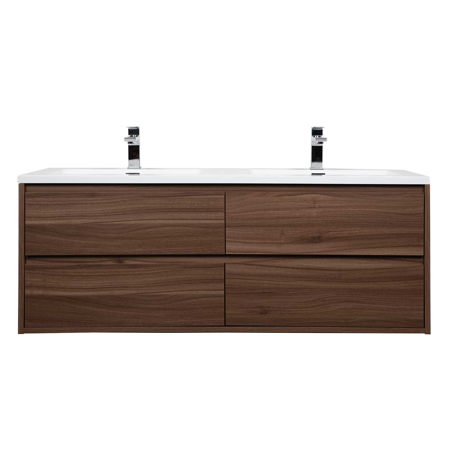 Bradford 54" Contemporary Double Sink Wall Mounted Bathroom Vanity, Walnut