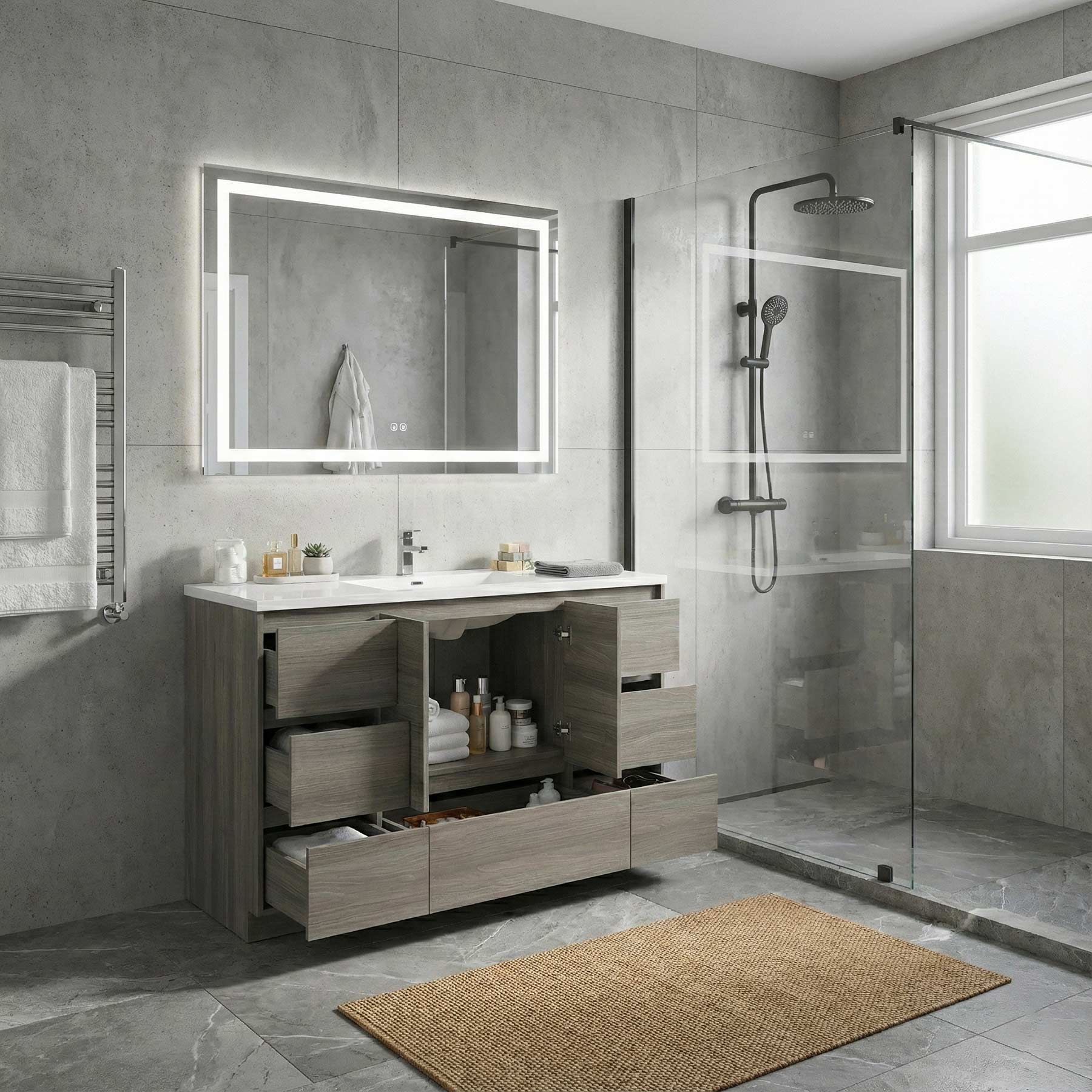 Once considered a niche design feature, handleless bathroom vanities have grown in popularity, fueled by an increasing demand for contemporary styles, minimalist looks and the need to maximize space. Handleless design creates a streamlined flow of bathroom units that’s beautiful as well as efficient. The resulting look is chic, clean and clutter-free. Crafted to complement modern decor with a streamlined form, This handless 59" Edison single vanity provides you with ample storage options, including (7) drawers and two cabinets. This cabinet arrives fully assembled for your convenience.