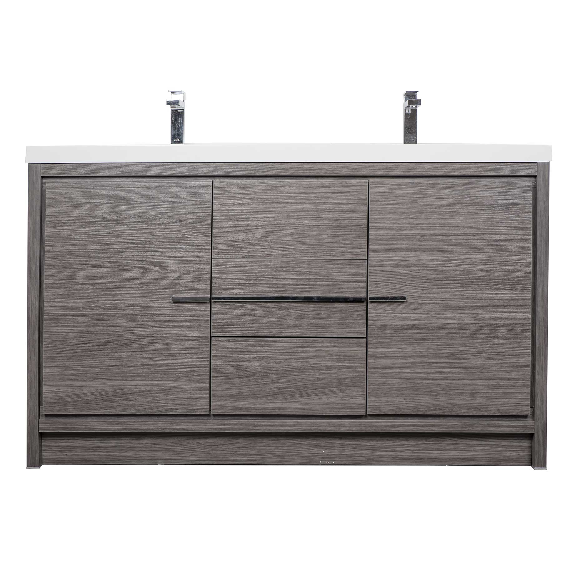 CBI Enna 59 Inch Double Bathroom Vanity Grey Oak TN-LA1500D-CO