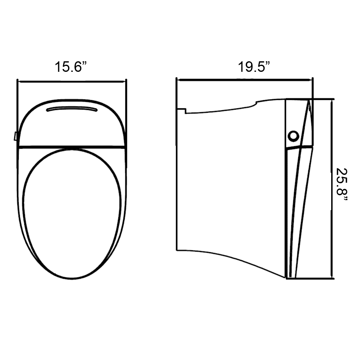 - Overall Width: 15.6" (measured from right most to left most edge of toilet)