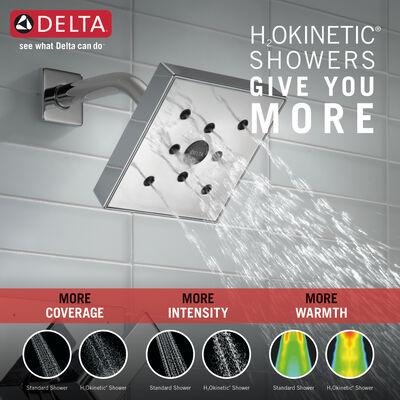 Delta® H2Okinetic® Showers look different because they are different. Using advanced technology, H2Okinetic showers sculpt water into a unique wave pattern, giving you 3X the coverage of a standard shower head.* The end result is a shower that provides more coverage, more warmth and more intensity for a truly drenching shower experience. Delta® pressure-balance valves use Monitor® Technology to protect you and your family from sudden temperature changes. This Brilliance Stainless finish has subtle, warm undertones which make it an excellent match with nickel or stainless steel and is extremely versatile, complementing nearly any look, be it traditional, transitional or contemporary. Delta WaterSense labeled faucets, showers and toilets use at least 20% less water than the industry standard—saving you money without compromising performance.