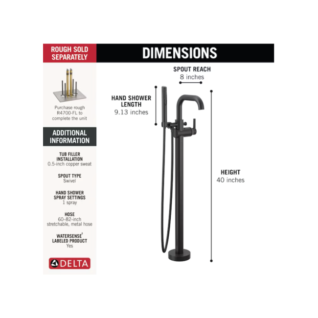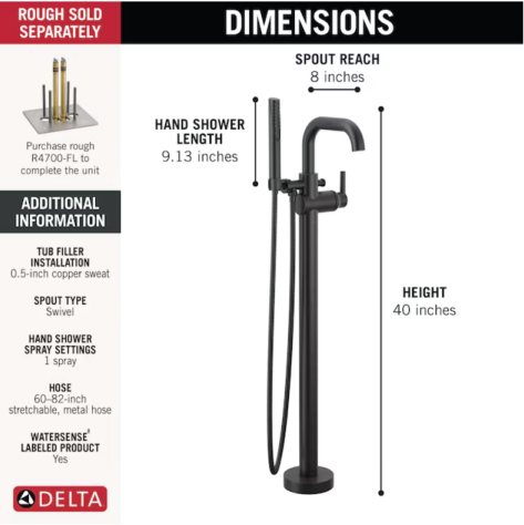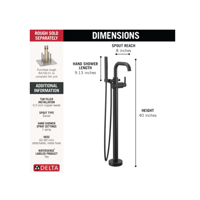 DELTA TRINSIC T4754-BLFL Floor Mount Tub Filler In Matte Black
