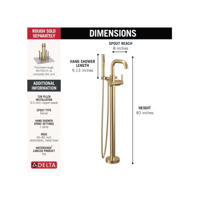 DELTA TRINSIC T4754-CZFL Floor Mount Tub Filler In Champagne Bronze