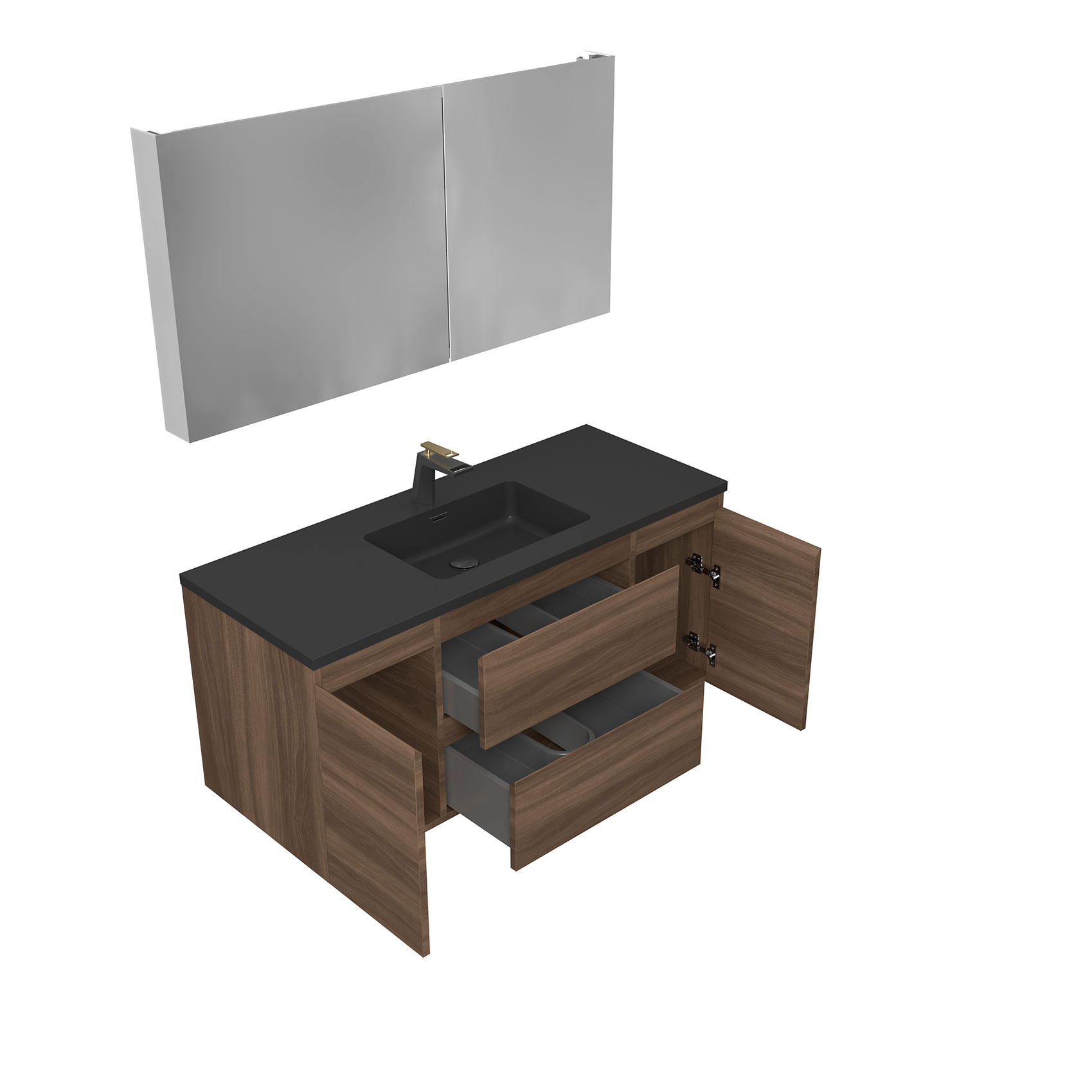 Edith 48" Wall-Mount Bathroom Vanity , Walnut, Black Top