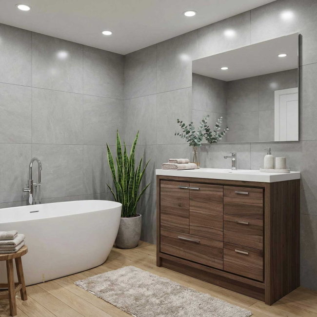 • Decorative furniture-style vanity gives your bathroom a custom look to complement your decor