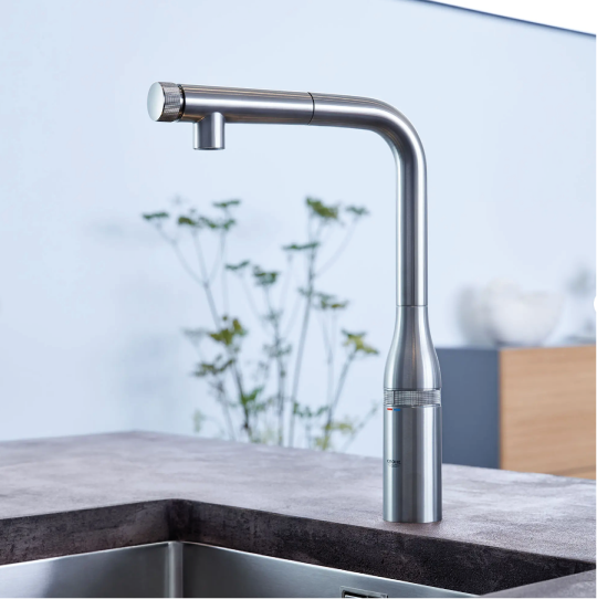 - PUSH-BUTTON ON/OFF: Exclusive GROHE SmartControl is an innovative kitchen faucet featuring a push-button tip on the spout to control on/off
