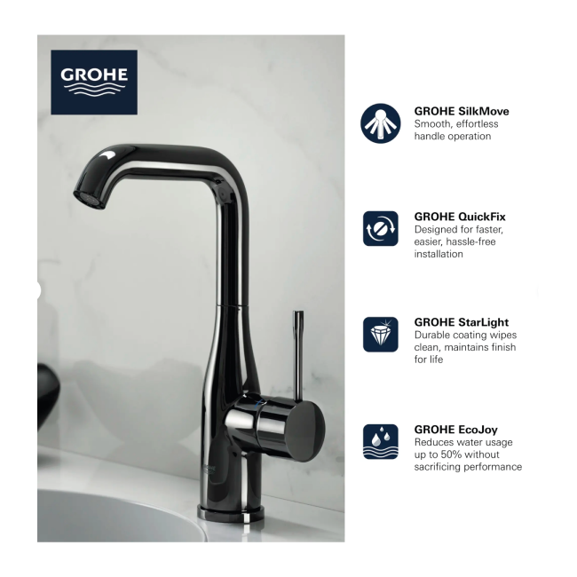 - SMOOTH HANDLE OPERATION: Features GROHE SilkMove for precise handle control