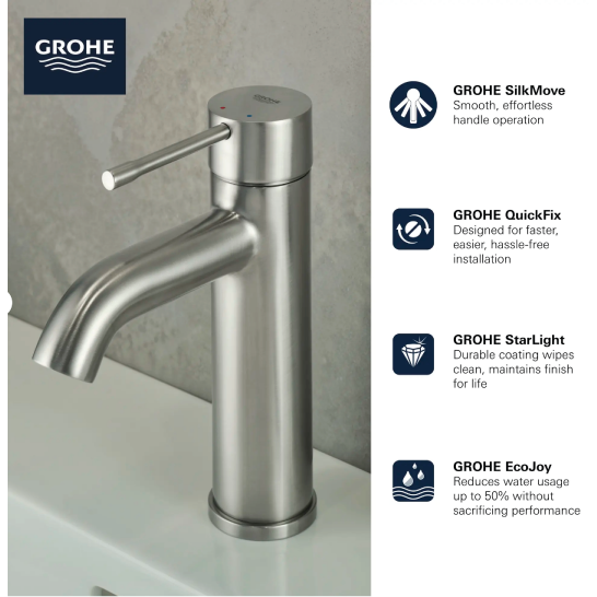 - DURABLE FINISHES: GROHE StarLight coating maintains luster on brushed and polished finishes