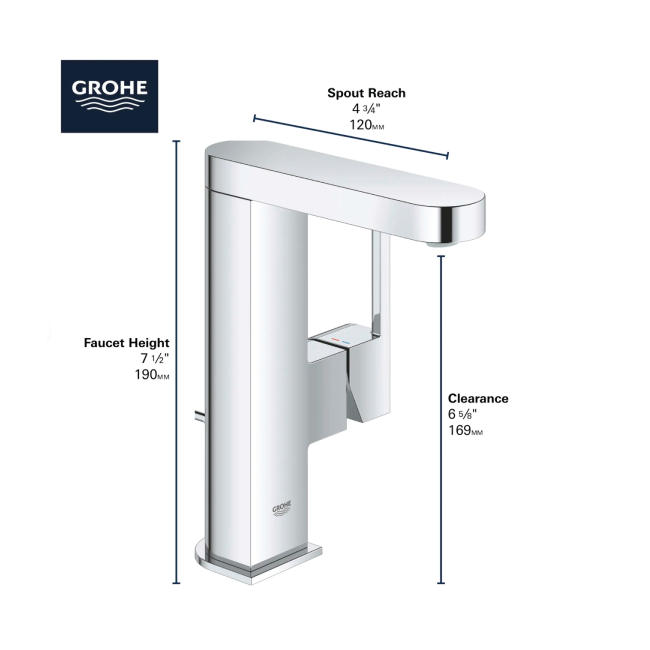 GROHE 23956003 PLUS Single Hole Single-Handle M-Size Bathroom Faucet, 1.2 GPM (4.5 L/min) GROHE StarLight Chrome
