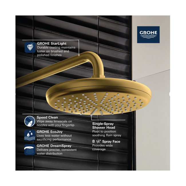 - Generous 8 ¼-in. diameter spray face