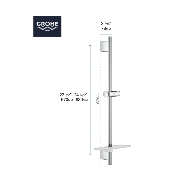The sleek, slim GROHE Rainshower Shower Slide Bar adds understated elegance to your bathroom. Designed for maximum versatility, the hand shower holder adjusts for the perfect angle, the height-adjustable glider swivels to accommodate left or right-hand preference. Includes EasyReach tray for added convenience.