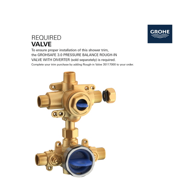 • Requires GrohSafe 3.0 Rough Valve with Diverter, sold separately