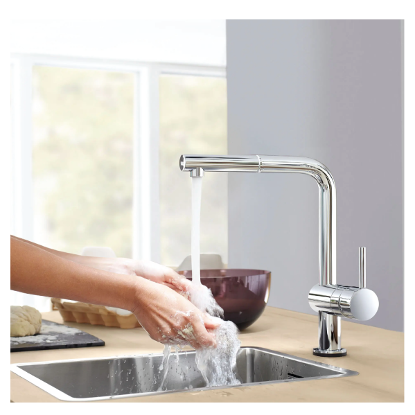 - PULL-OUT SINGLE SPRAY FAUCET: Laminar spray delivers a smooth, even flow, a hallmark of GROHE engineering