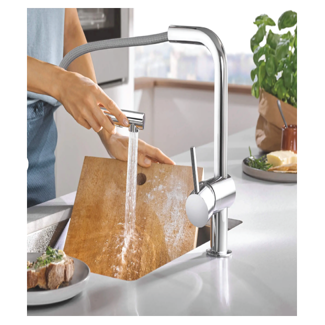 GROHE 30300000 MINTA SINGLE-HANDLE PULL-OUT KITCHEN FAUCET DUAL SPRAY 1.75 GPM(6.6LMIN) GROHE StarLight Chrome