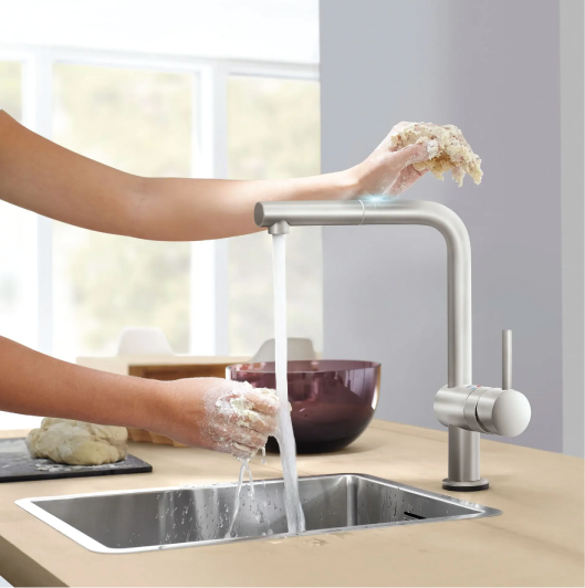 - OPTIONAL TOUCHLESS CONVENIENCE: Works with GROHE Foot Control, model 30310000, sold separately