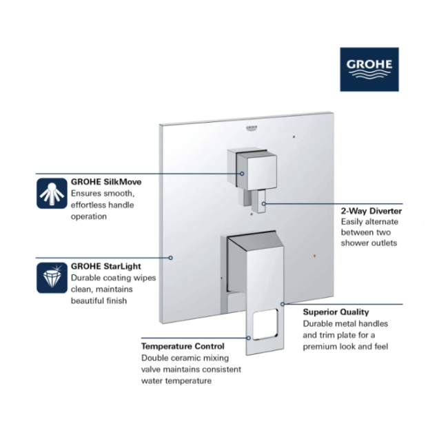 - Requires GrohSafe 3.0 Rough Valve with Diverter, sold separately