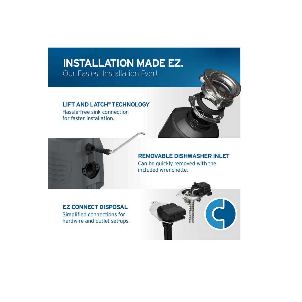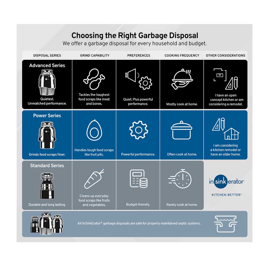 Continuous Feed: Keep the cleanup moving. The continuous feed design allows you to add waste while the disposal is running, making it ideal for large family meals.