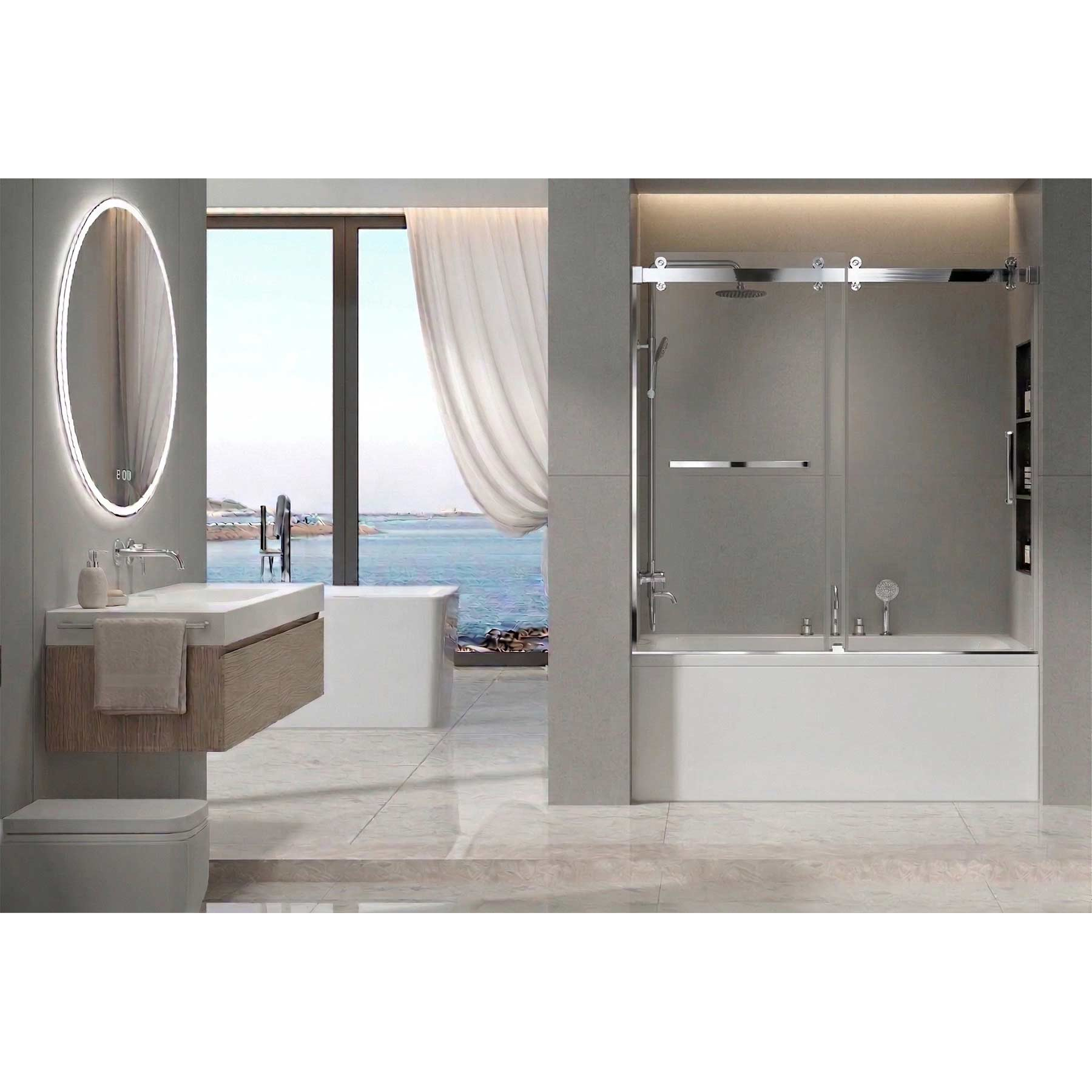Elevate your bathroom’s aesthetic without a full remodel. The Sapphire Series bathtub bypass door replaces dated shower curtains or framed glass with a seamless, architectural statement. Crafted with heavy-duty 3/8" (10mm) tempered safety glass, this dual-sliding system offers effortless entry from either side and a whisper-quiet glide that defines modern luxury.