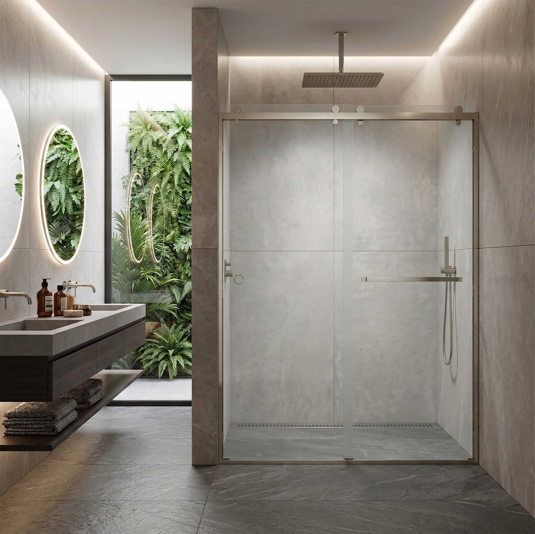 Elevate your bathroom with the Scala Semi-Frameless Double Sliding Door, where sophisticated modern engineering meets timeless design. This bypass shower door features a state-of-the-art rolling system that ensures a whisper-quiet, effortless glide every time you step into your sanctuary.